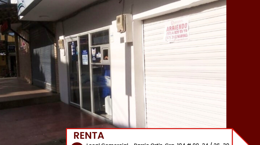 Address: CRA 104 # 99-24 / 26-30 PRIMER PISO, BARRIO ORTIZ LOCAL COMERCIAL
